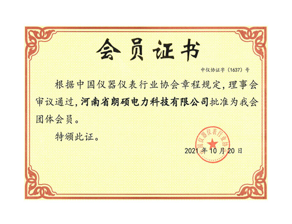 会员证书—中国仪器仪表行业协会