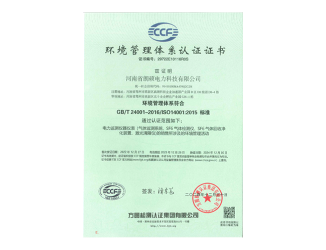 环境管理体系认证证书