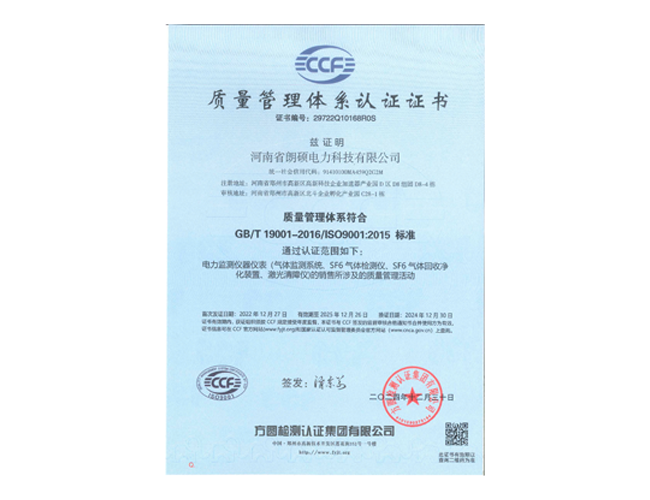 质量管理体系认证证书